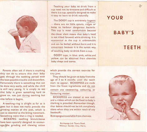 Driven by a concern for the nation’s oral health, Dr Harry Campbell founded Bickiepegs in 1925. He observed that softer diets were linked to poorer chewing habits, receding chins, and crowded teeth. Believing good oral habits should begin early, he advocated exposing babies to firmer textures to support healthy chewing from the start.